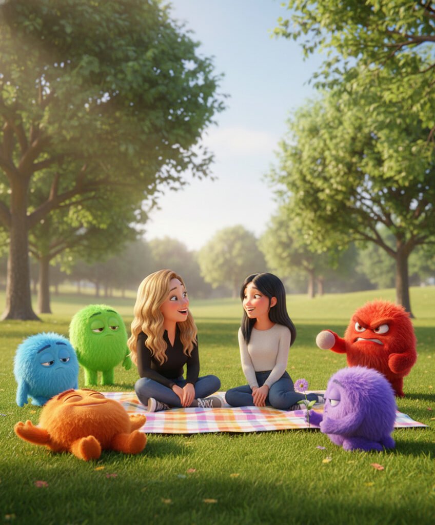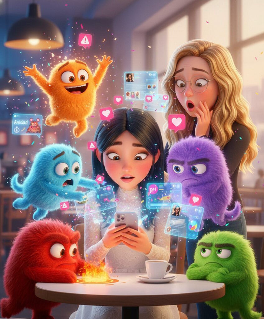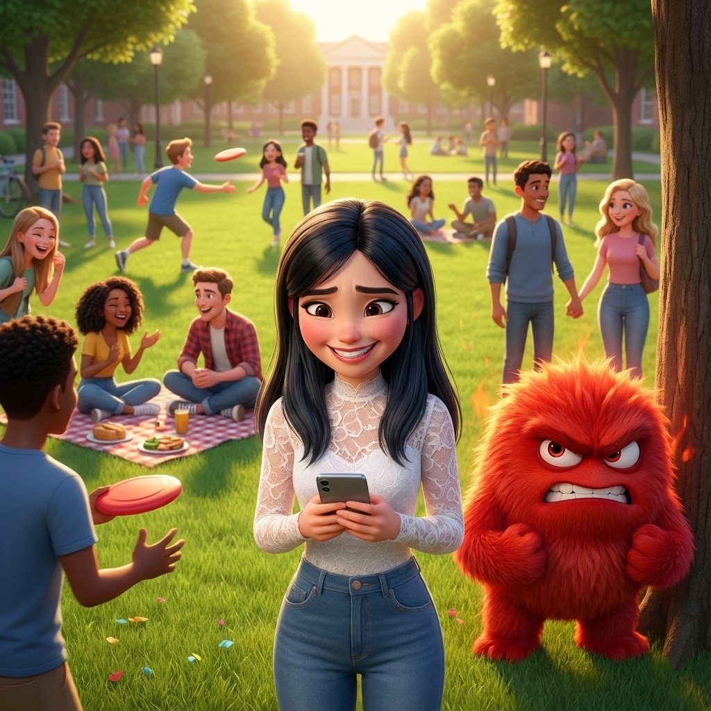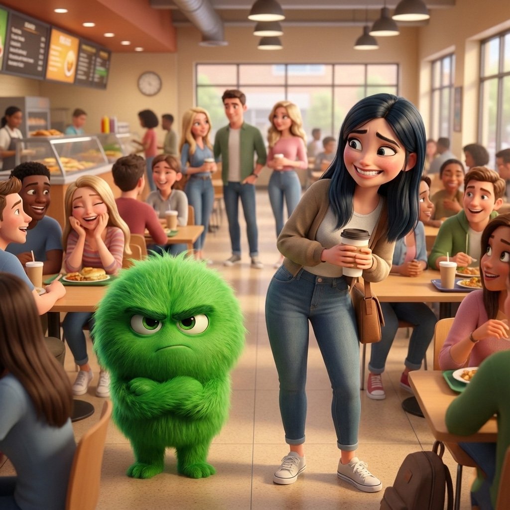 Lucía intenta disfrutar el momento, pero su Envidia le recuerda cada detalle. Sus amigas se ven increíbles, todo el mundo parece tener la vida resuelta y ella solo sonríe para que nadie note el caos interno. Spoiler: no todo lo que se ve perfecto… lo es.